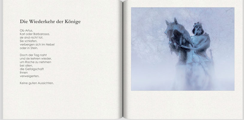 Das Mittelalter ... Fast ein Jahr habe ich um die für mich passende Form gerungen, in der ich diese Epoche fotografisch darstellen wollte. Der Bereich der Architektur und figuralen Kunst, der anfangs noch übermäßige Bedeutung hatte, schrumpfte mehr und mehr und wich symbolhaften Fotos, die v. a. das Lebensgefühl dieser Zeit widerspiegeln. Auch die Freude und Lebenslust sollte ihren Platz finden, daher habe ich auch eine Gedichtinterpretation in das Projekt integriert.